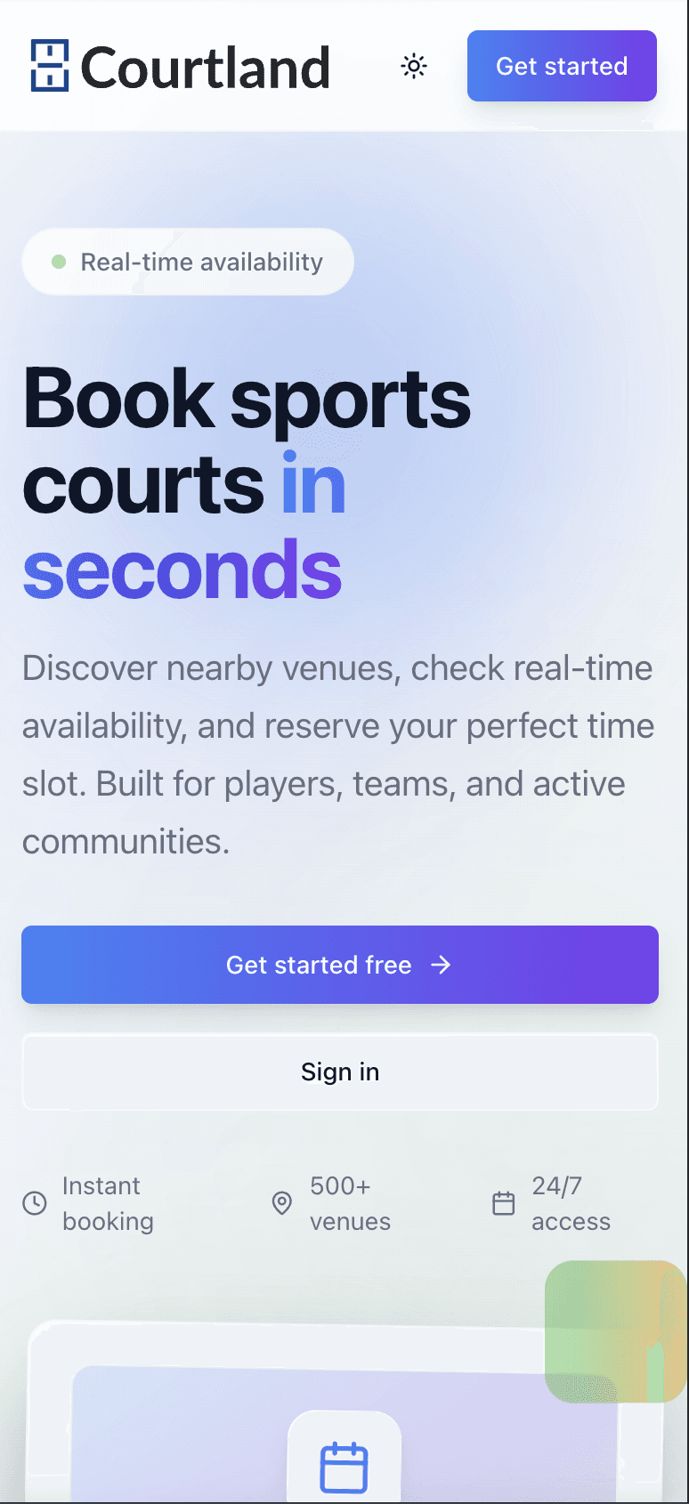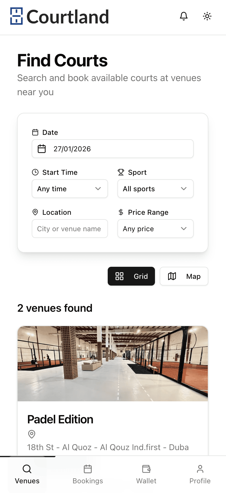 Web, Android, and iOS apps connecting players to venues and coaches—plus a powerful dashboard for facility management